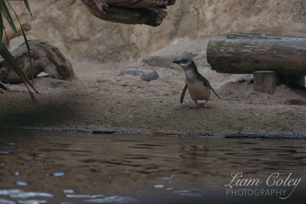 A little blue penguin waits expectantly for his lunch at the National Aquarium of New Zealand.