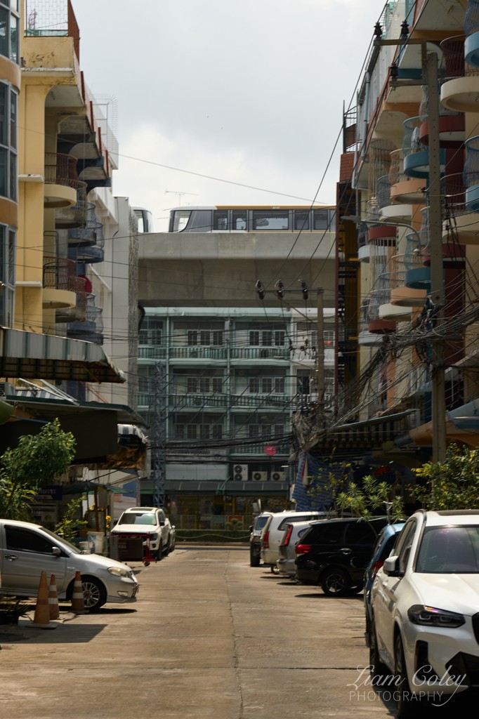 The Bangkok Sky Train. I waited in this alley in 43º heat until the train finally appeared, securing a bucket-list shot!
