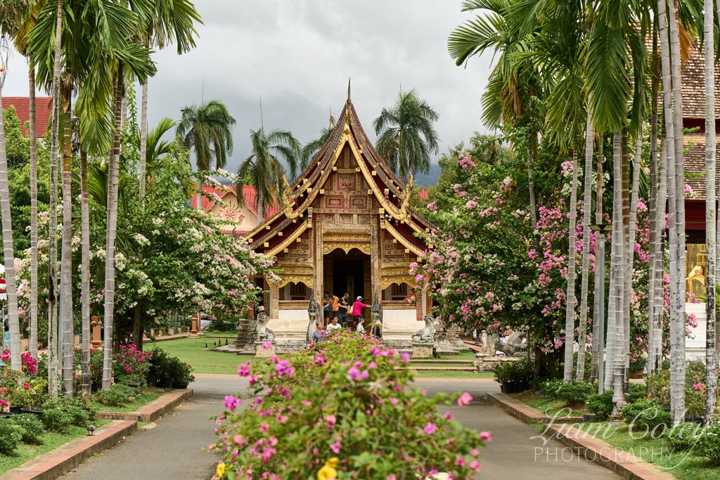 Flowers in bloom at Wat Phra Singh Woramahawihan.