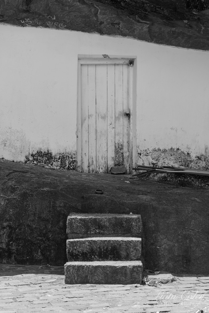 A door into the side of the cliff at the Dambulla Cave Temple.