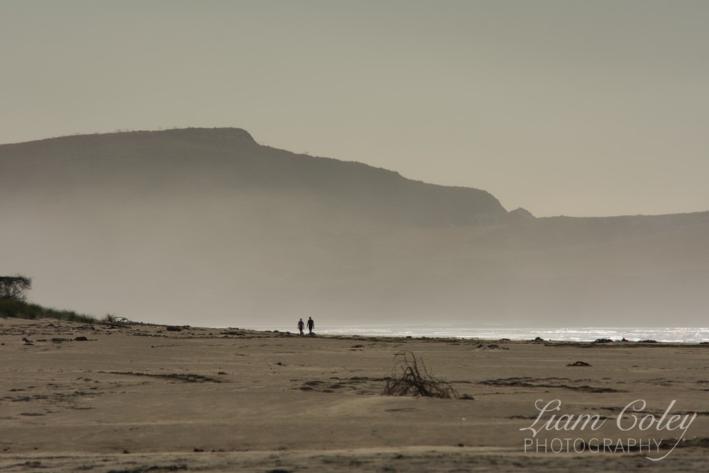 A windy morning kicks up sand on Surat Bay Beach.