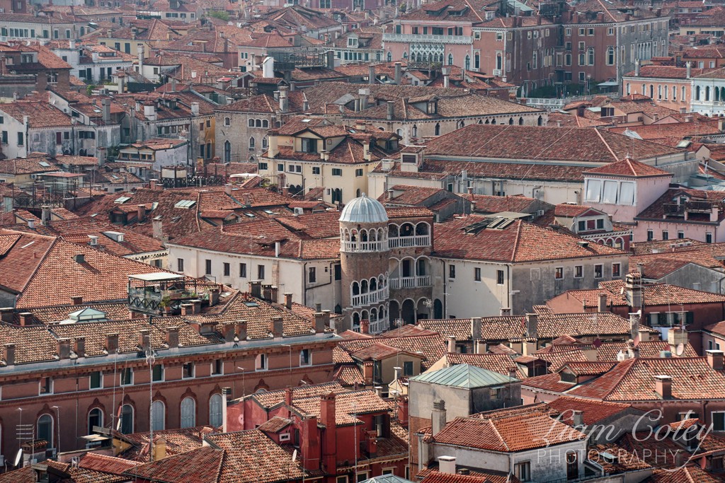 The iconic red rooftops of Venice, viewed from St Mark's Campanile.