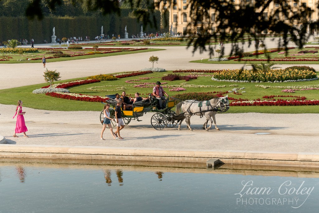 Tourists take a carriage ride at Schloss Schönbrunn.